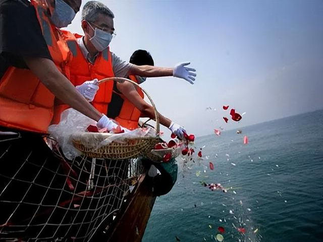 * 海葬是一種回歸自然的葬禮方式,有利於節約土地資源和保護環境。